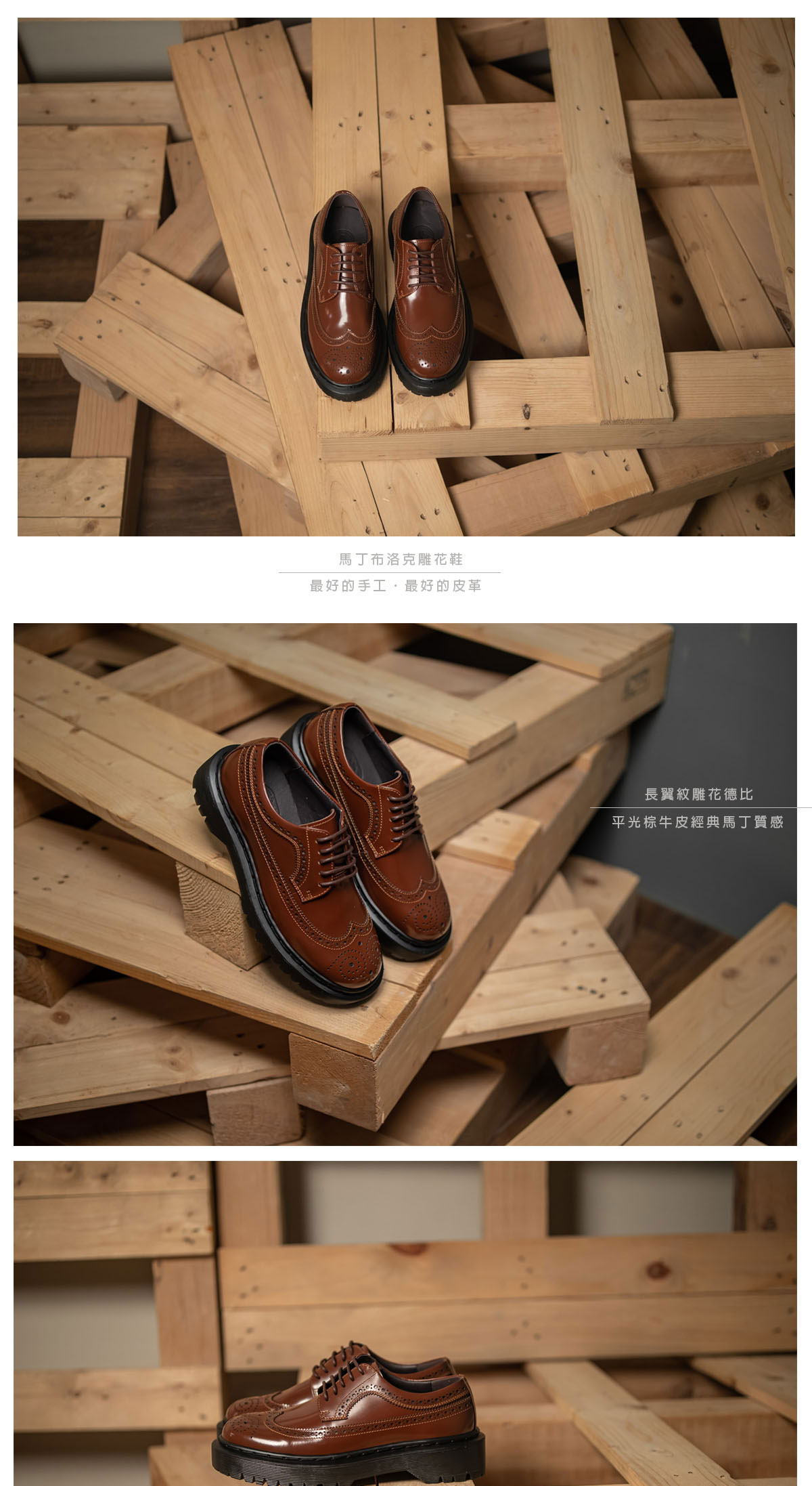 馬丁布洛克雕花鞋 長翼紋德比鞋_平光棕 不分男女 34-48碼