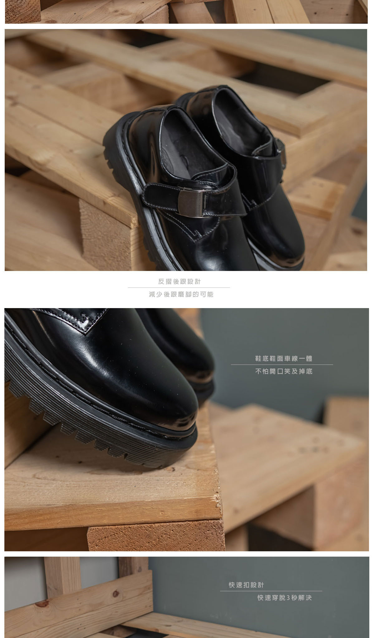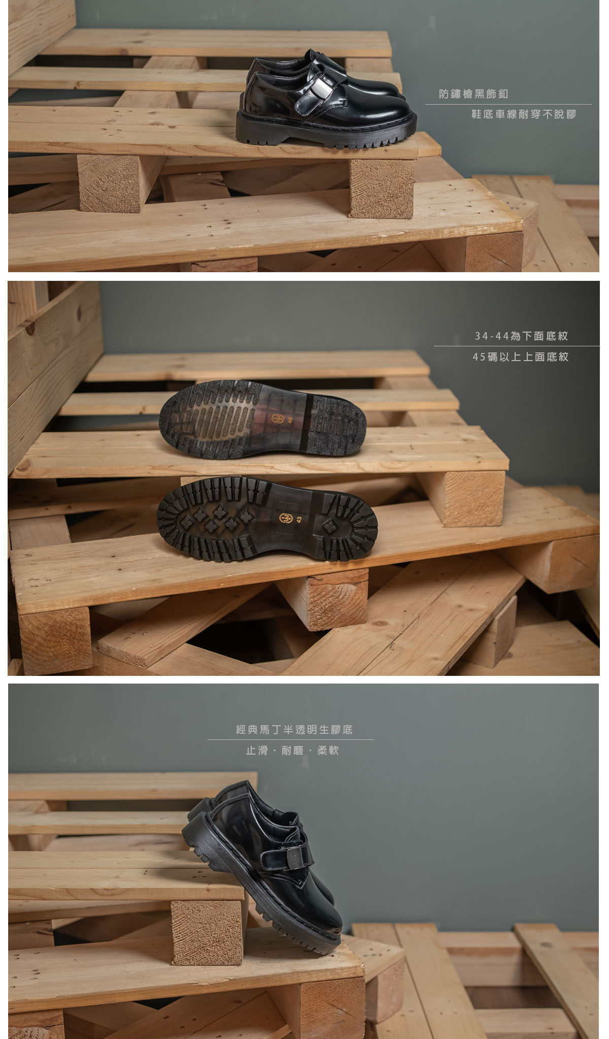 ▲防滑橡膠鞋底 ▲鞋面頭層進口牛皮